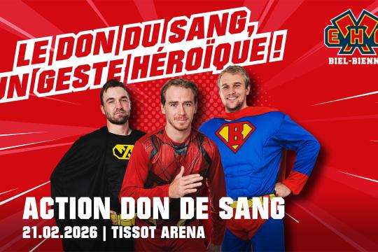 La collecte de sang à la Tissot-Arena est déjà devenue un RDV fixe dans l'agenda des fans du HC Bienne. Soyez présent lorsque les donneurs de sang biennois se réuniront pour faire un don.